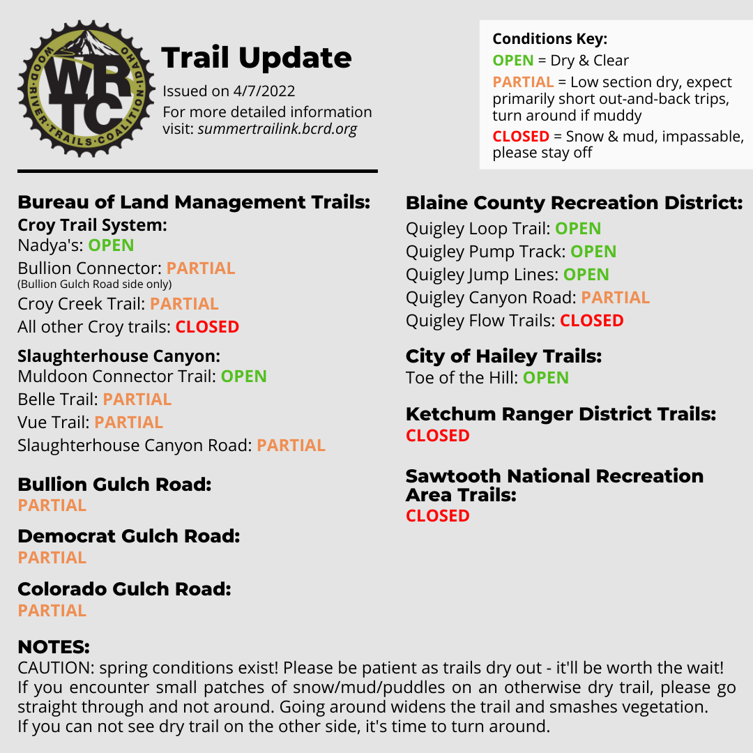 4/7/2022 Trail Conditions Update